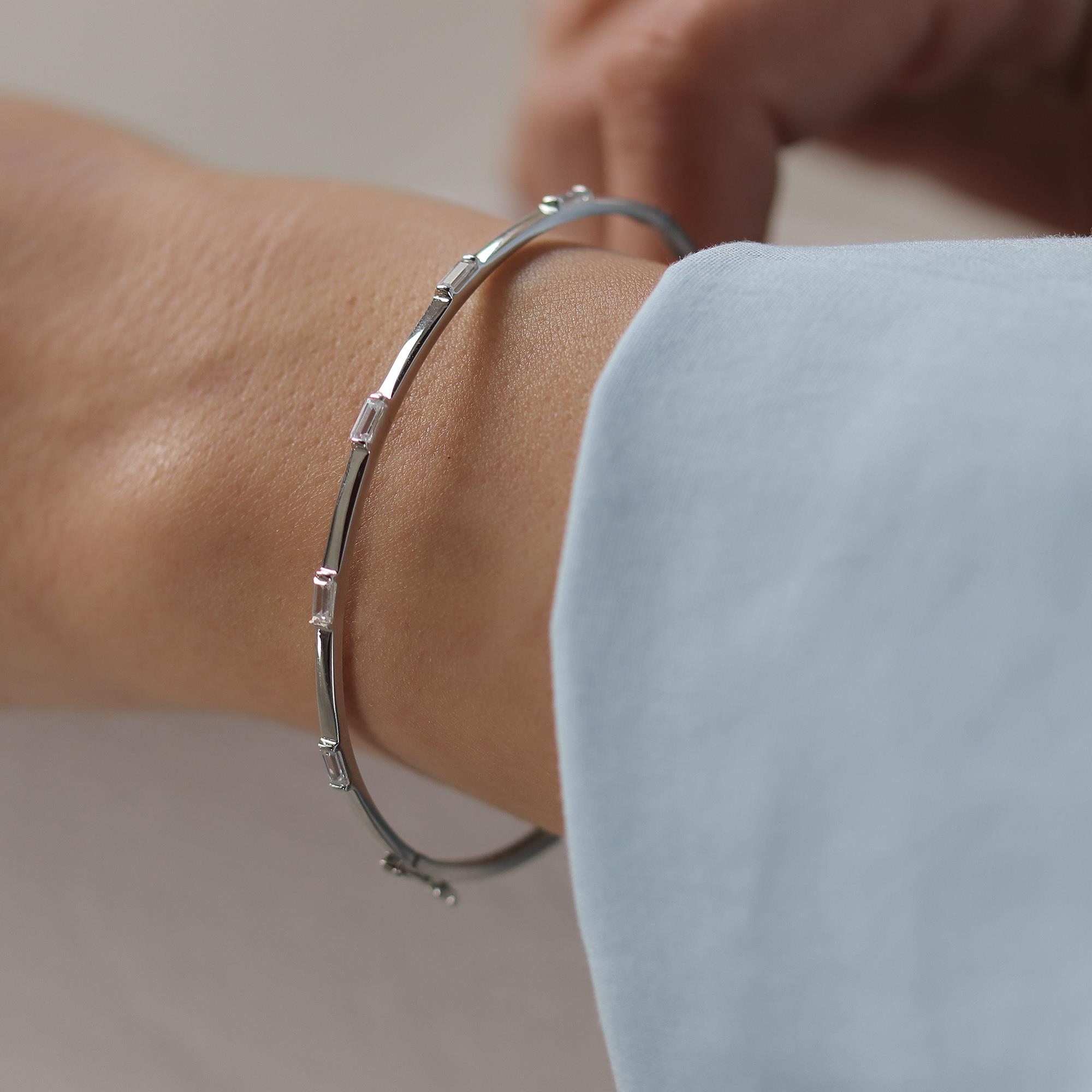 Baget Taşlı Bilezik | Beyaz Altın
